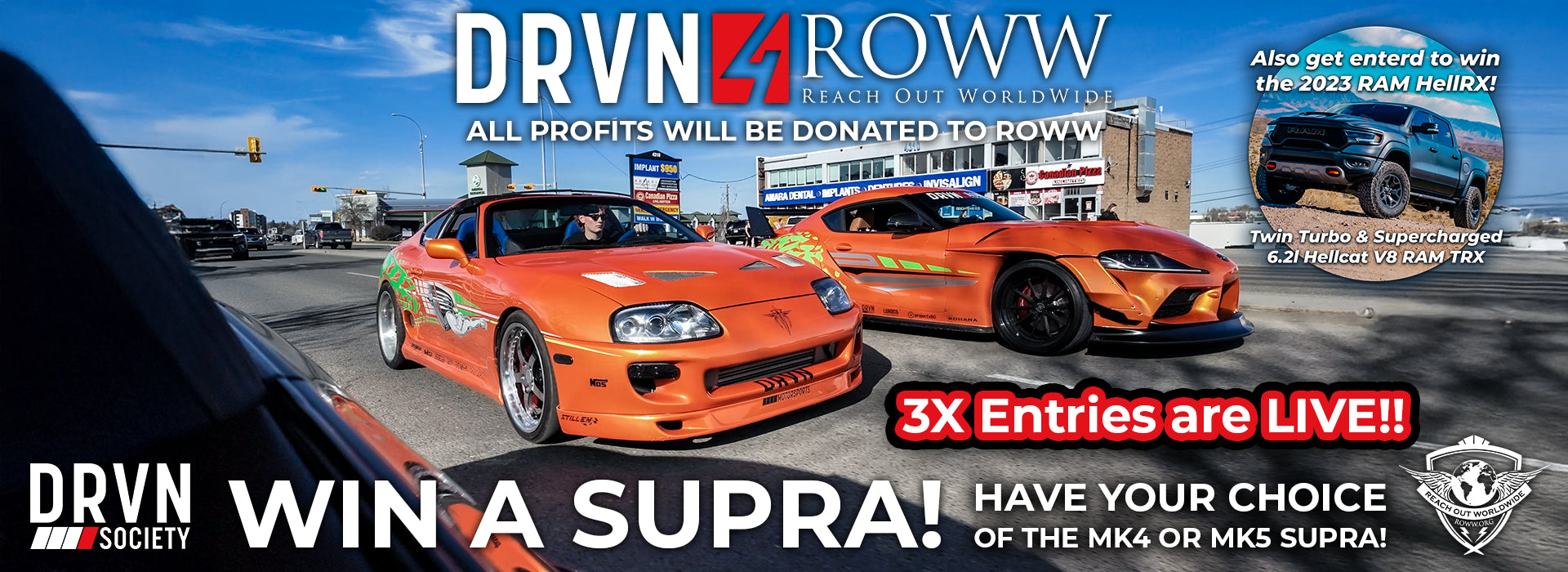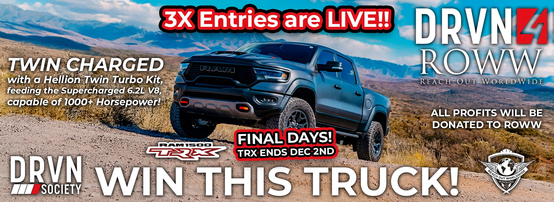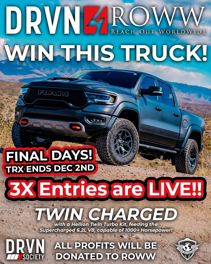When you get entered to win the 2023 MK5 Supra, you will also get entered to win this 2022 Ram TRX with a Hellion Twin turbo Kit, that feeds the Supercharged 6.2L Hellcat V8, making this truck capable of 1000+ horsepower! Therefore, we have dubbed this truck the HellRX.